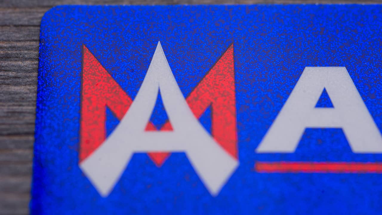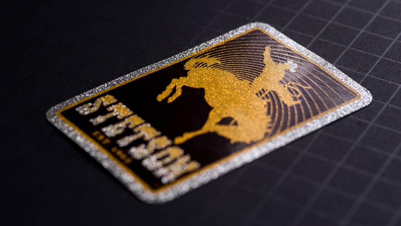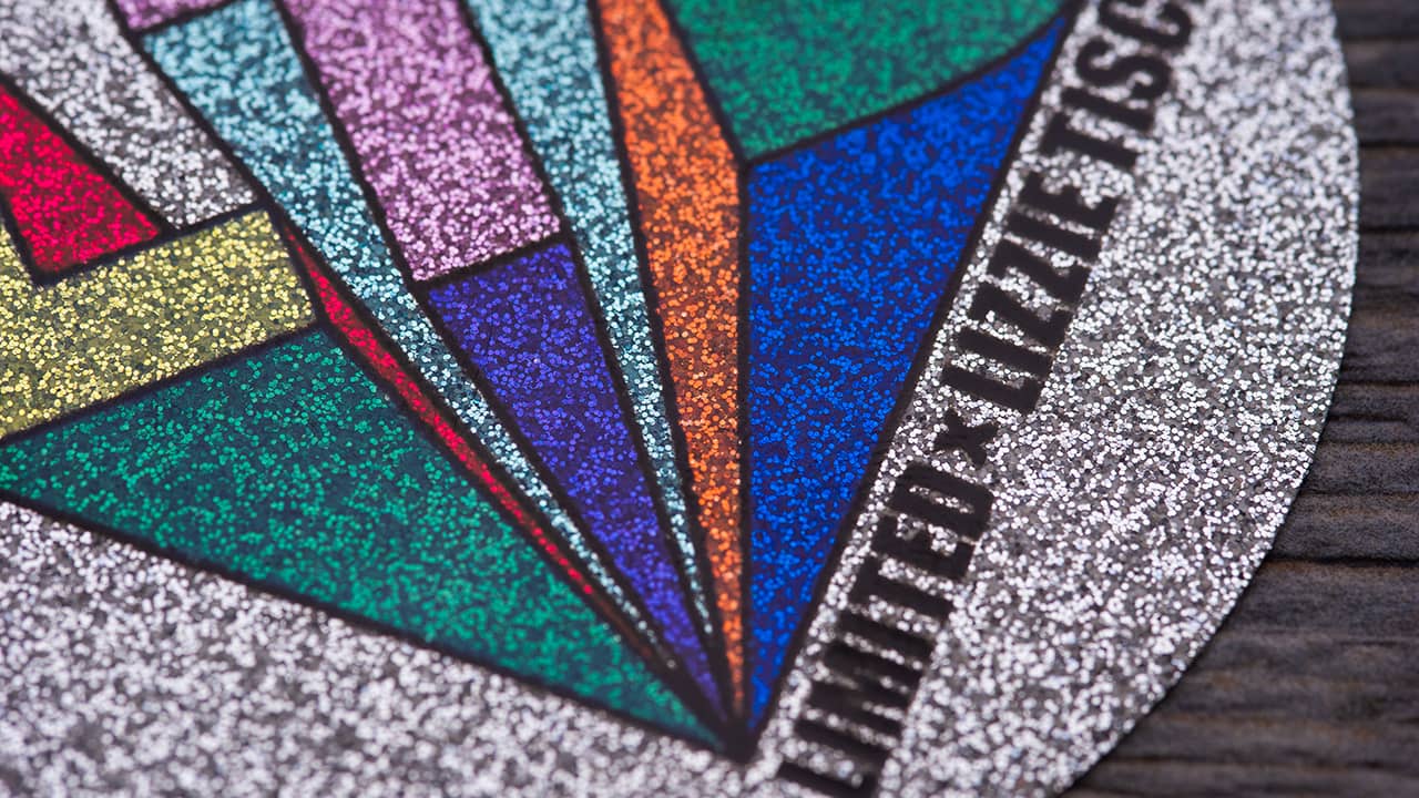 Quality 2 mil screen printed Silver Glitter or Mosaic Holographic. Laminate options available. Print transparent colors over shiny glitter or holographic for an amazing effect!